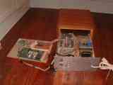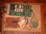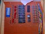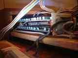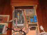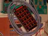 There's also a blinkenlights panel connected to a serial port and 2 more ports taking up the EPROM burner you can see in the pix - 3 9V batteries required! Finally there's a choice of either the original Tangerine hex keypad or a nicely cased 'real' keyboard that's been nicked from an original Bell&Howell Apple ][....